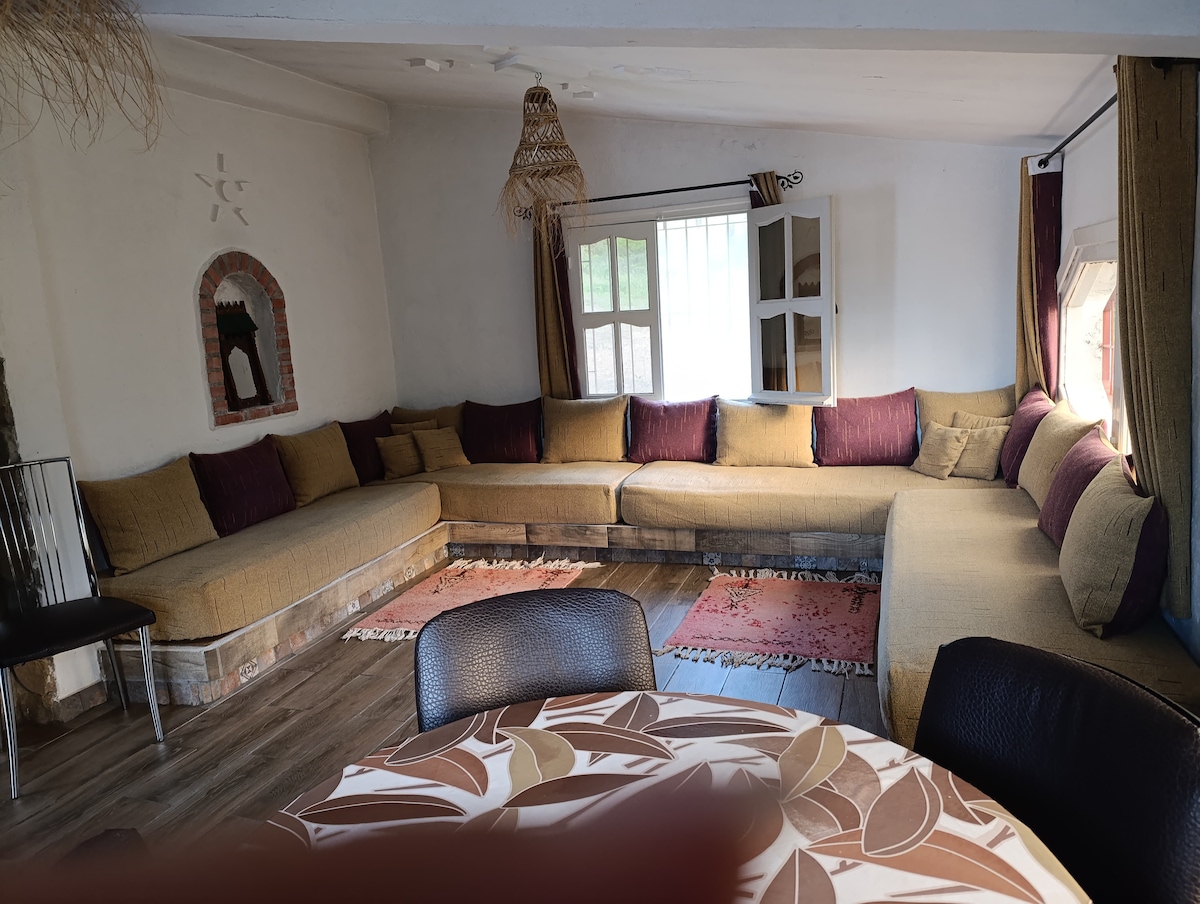 Bonjour les amateurs de la nature, randonneur, ma maison se trouve à un village Ain Zarka tout près de Tetouan. Entouré de montagnes, près de la forêt, traversé par une rivière à cascade , des piscines naturelles. Au village des restaurants des sallons de café au milieu des jardin traversé par la rivière claire...la maison très calme isolé des agglomération, un grandjardin. une petite ferme. siéger. à ceux qui veulent du calme tranquillité c’est ici leur place.
