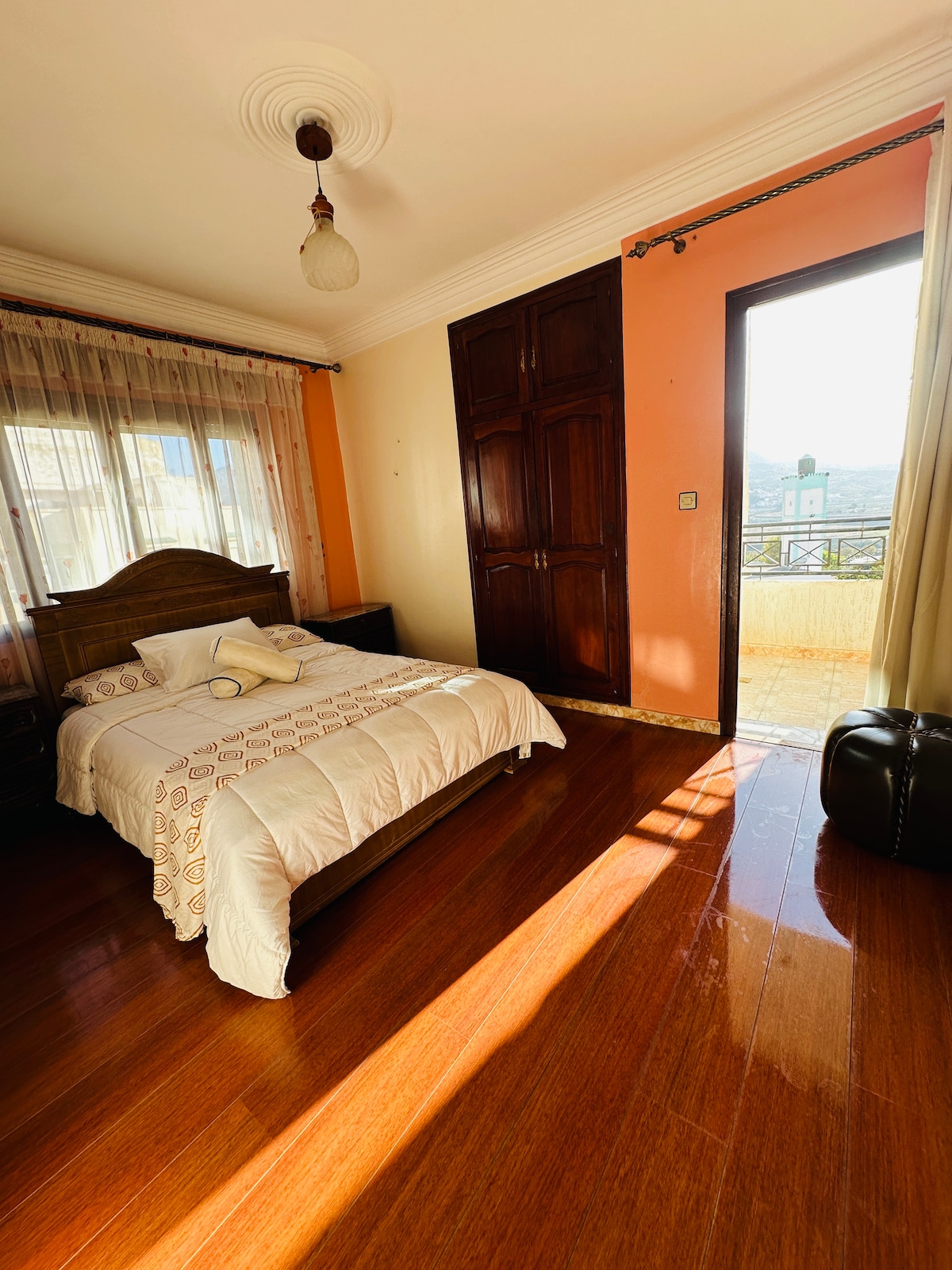 Situé en plein coeur de la wilaya center, avec possibilité de place de parking privée payant en Sterrain, vous y trouverez les meilleures restaurants de Tétouan à 1 min ainsi que différents commerces Carrefour market, épicerie, boucherie, hamam, coiffeur, salle de sport Fit one, plusieurs cafés de renommée, glacier, pâtisseries françaises, salle de jeux pour enfants jusqu'à 8 ans, absolument tout à 3 min à pieds. Quartier sécurisé avec présence de police 24/24. Plage à 10kms unique sur Tétouan