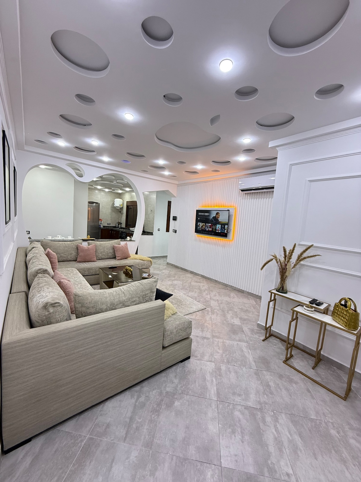 ✨L'appartement Panoramique à les jardins bleus se caractérise par son design à la fois moderne et élégant, chaque élément étant soigneusement conçu pour vous garantir une expérience sans pareille ✨Son emplacement central ✅ Appartement avec vue panoramique sur la mer et à proximité de : ✅ 1 min de la plage de Martil 🏖 et sa fameuses corniche ✅ 5 min de la Plage de Cabo Negro 🏝 ✅ 4 min de Ikea et KFC 🍗 ✅ 6 min de Marjane et McDonald's 🍟 ✅ 1 min restaurants cafés, commerces