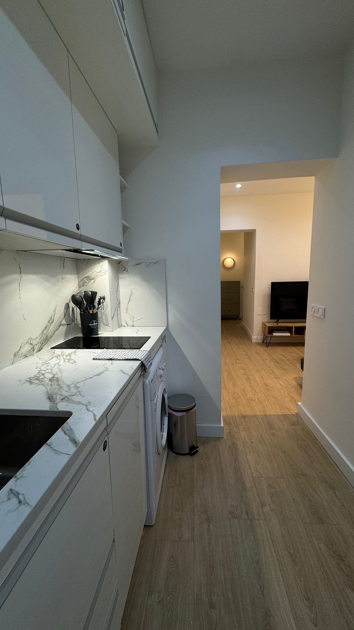 Modern, renovated, and bright studio located in a complex of 11 apartments in Cuzco, a well-connected residential area just a 15-minute walk from the Santiago Bernabéu stadium and very close to Paseo de la Castellana. It is fully equipped and features 40 square meters, comprising a living-dining room, a built-in bed, a bathroom, and a full kitchen. It has a maximum capacity for three people, making it perfect for couples, families business trips.