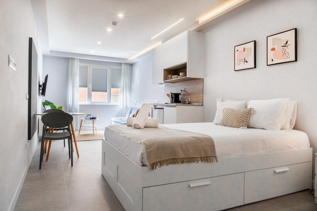 Discover a haven of modern tranquility in this newly constructed studio. Bathed in natural light, the space features a double bed, a sleek integrated kitchen, and a pristine bathroom. Just 3 minutes walking distance from Estrecho metro station in the vibrant Tetuán neighborhood, this stylish retreat promises a serene escape amidst contemporary elegance. Ideal for both leisure and business travelers, immerse yourself in comfort and convenience at the heart of Madrid.