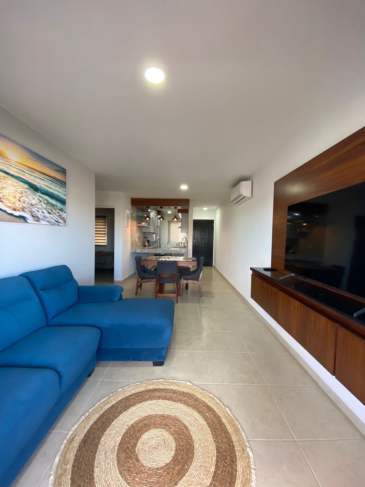 Departamento a 200 metros de la playa, 5 minutos caminando, no necesitas tu carro. El departamento se encuentra en 1er piso y cuenta con: -Recamara Principal con cama Queen Size -Recamara secundaria con litera matrimonial -1 Baño y 1/2 -Cocina equipada -Sala y comedor -Smart Tv en sala -Wifi -Balcón con vista a la alberca -Terraza con vista al mar Amenidades: -Alberca -Palapas con asador de gas -Bicicletas -Área para ejercicios -Mini Golf -Juegos Infantiles -Cancha de Voleibol -Acceso controlad