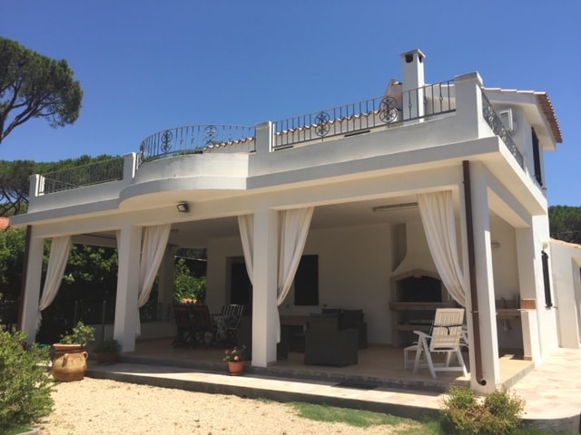 Villa surrounded by greenery, in the classic Mediterranean scrub, 150 meters. from its beautiful turquoise sea, with a fine white sand beach. It has 4 bedrooms, two doubles and two with double single beds, a large living room and kitchen with sea view, and two bathrooms with hydromassage showers. Free internal and external Wi-Fi, video surveillance system, outdoor heated showers, outdoor barbecue. For the year 2019, guests can rent a car with us, request a quote.