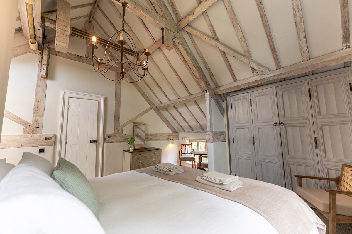Boddington Mill is a stunning countryside retreat steeped in history and rural charm. The building retains industrial mill parts which intersect multiple levels for a unique and generous living space. Its south-facing garden includes outside dining, wood-fired hot tub, and large lawn, home to wildlife and fruit-bearing trees. Inside, the three king sized bedrooms feature luxury bedding beneath vaulted, oak-beamed ceilings and period windows.