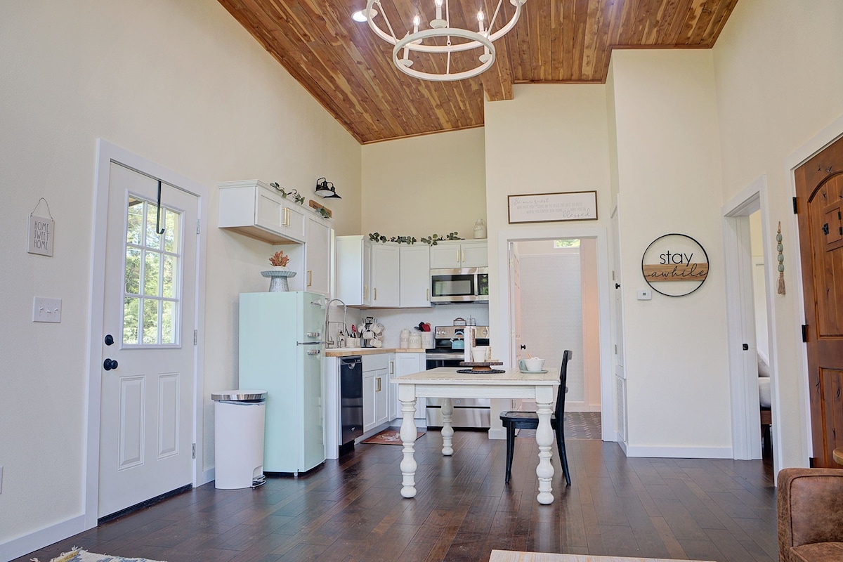 Escape to our enchanting farmhouse. Sink into a luxurious king-size bed and indulge in a spacious walk-in shower. A large laundry room adds convenience. Unleash your inner chef in the fully equipped kitchen. Enjoy entertainment on the 65-inch TV with streaming services in the living room. Disconnect from everyday noise. Reconnect with what matters. Unwind, rejuvenate, create lasting memories.