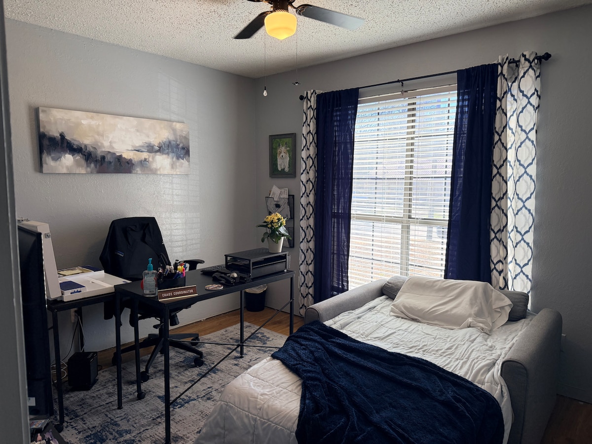 Convenient location to everything nestled in a quiet culdesac. We have thought of everything you might need for your stay! King bed, Queen Bed, bunk beds, comfy futon & 2 couches for sleeping. The fort style bunk bed has comfortable pillow top twin mattresses & room has toys for the kids! Duplex like mother in law suite under roof shares ONLY a back porch & fenced backyard. There is NO shared indoor space. It is all private for your family. *air mattress upon request
