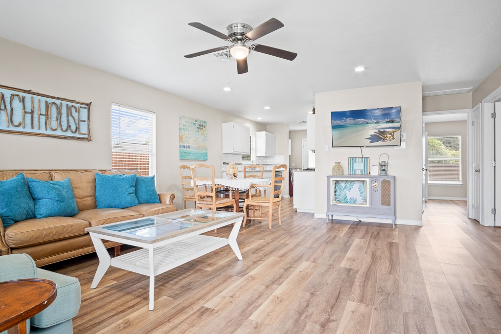 Enjoy our relaxing bay cottage home! This spacious home is perfect for you to host a weekend getaway with your family or just a get-together fishing trip. Located only one block off the bay, a 10 minutes walk to the beach or downtown, & right across the street from a local bar & grill. This home is a combination of recently updated mixed with original Rockport charm that will work for any occasion. Made for entertaining or just some peace and quiet. Convenience is located around every corner! We will send you a private code that is good only during your stay. The front door sticks with the heating and cooling of the day. Please pull the door towards you when entering the code. Please DO NOT lock the door handle lock as this will lock you out of the house. You will be able to access all the rooms of the house except doors that are locked. There is a back yard section that is off limits. It will be labeled with do not enter. Thank you for respecting those boundaries. Reach out to us if you have any questions. We do not live in Rockport, please contact us if there is an emergency of any sort. We have local help if needed Our Cottage is just a 10 min walk or a couple minutes drive to Rockport Beach and Downtown Rockport. The bay is only 1 block away across Broadway street great for watching the sun rise, fishing, or bird watching. Poor Man Country Club is directly across the street from the cottage and has good bar food and drinks if you choose. Easy parking at Fisher Bay Cottage and short walk to Rockport Beach and Downtown Rockport. You can rent a Golf Cart during your visit or drive your car around.