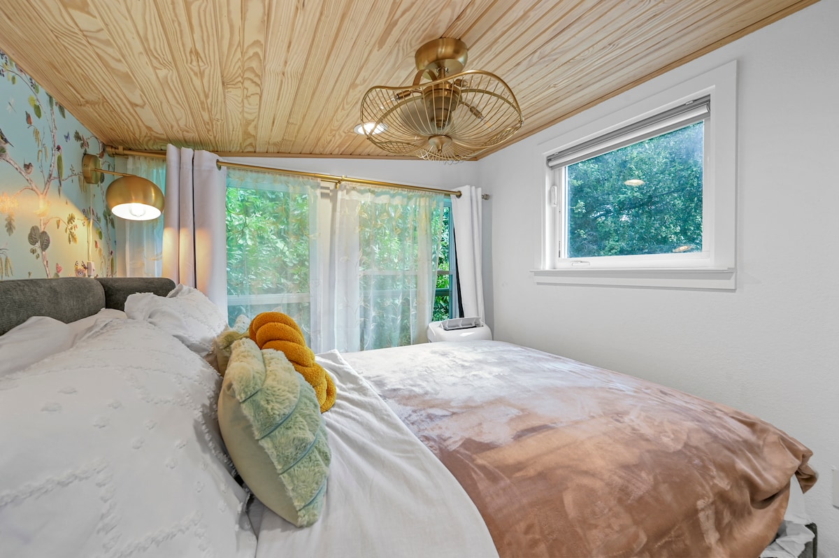 Only 8 minutes walking distance from the Denton Square (or >5 on the tandem bike!), The Fallon House is the perfect base for visiting Denton's best restaurants, bars, and shops. Nestled behind a Craftsman home on a quaint street, The Fallon House is a thoughtfully designed standalone cottage, and offers anything you may need for a private retreat. The Fallon House features a bedroom with a King bed and a Queen sleeper sofa, making it ideal for a romantic hideout or small family retreat.