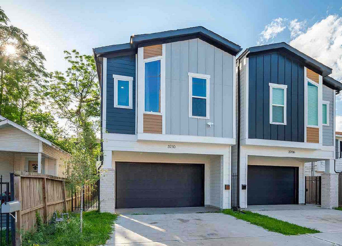 Welcome to The Hideaway. This spacious home is perfectly located minutes from Minute Maid Park, Toyota Center, Texas Medical Center, Houston Zoo, Museum of Fine Arts, George R Brown Center and Reliant Stadium. Relax and enjoy a brand-new modern 3 story build. Perfect for hosting your family and friends. Indulge in some of Houston's finest hometown cuisines such as The Breakfast Klub, Brennan's of Houston, Turkey Leg Hut and Pappadeaux Seafood. The house is equipped with 24/7 surveillance.