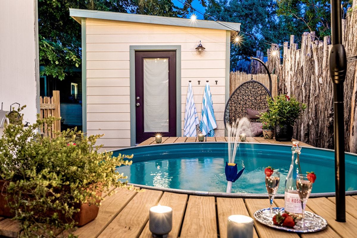 宁静的平房,带私人游泳池,距离市中心1.5英里