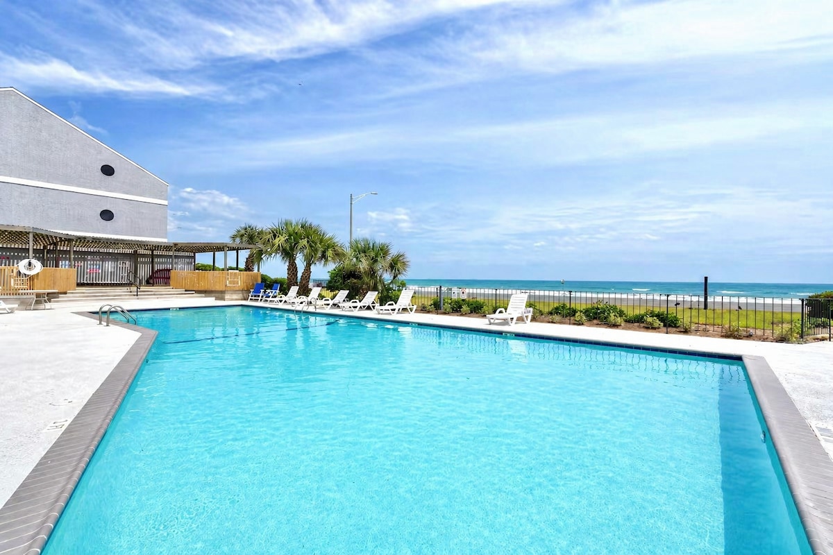 All reservations require the primary guest be 25 years of age or older. This ocean front 2nd floor condo has amazing ocean view and sunrises. It has been completely remodeled in 2019. We have one pool directly in front of our condo and 2nd one by the office. No pets are allowed due to HOA rules. We are very close to all the shopping and restaraunts. Come listen to the waves and smell the salt air from the balcony.