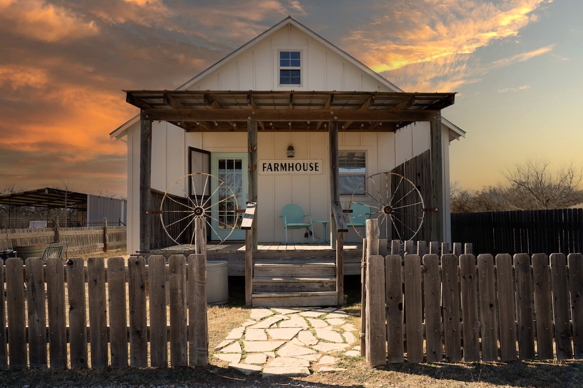 The Farmhouse at Spotted Sheep Farms is a Texas chic property and is perfect for a wine country getaway. The property is home to animals and wild life including alpacas, llamas, miniature donkeys, miniature sheep and of course, spotted sheep! It boasts an open floorplan with full kitchen, queen bedroom, loft with two twin beds, brand new HotTub, satellite TV, WiFi, Netflix, outdoor games, fire pit, and large porch to watch the sunset and farm animals.