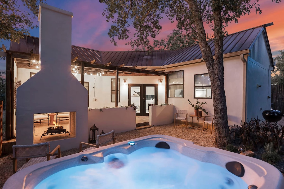 ★ "Absolutely fantastic get away, the vibe was romantic and the place was perfect." 🏡 3 blocks to FBG’s East Main St—stroll to wine tasting rooms 🔥 Secluded yard with sauna, hot tub, fire pit 🏡 Perfect cozy cabin vibe couples getaway with total privacy 🛏 King bedroom with super comfy bedding 🥘 Fully equipped kitchen 🏑Fun loft space with air hockey table 🐶 Dog friendly Everything is set for your romantic Hill Country escape—book now before the calendar fills!