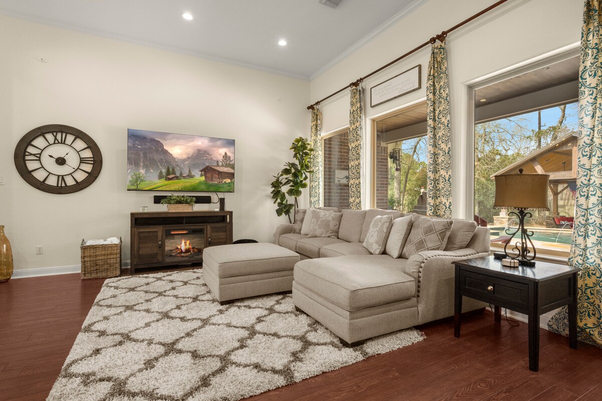 🍃Casa Granada is the perfect getaway home for families and groups- modern and cozy! Our floor to ceiling sliding glass doors, reveal our large, private backyard. Making this home, truly one of a kind. Only minutes away from The Woodlands and shops on Market street. Enjoy a night in with our Philips hue lights to set the perfect mood. You can also work remotely or hit the home gym! WIFI/TV/PARKING/CENTRAL AC/WASHER/DRYER/PATIO/GYM **For a grill: must be requested 24 hours before check in