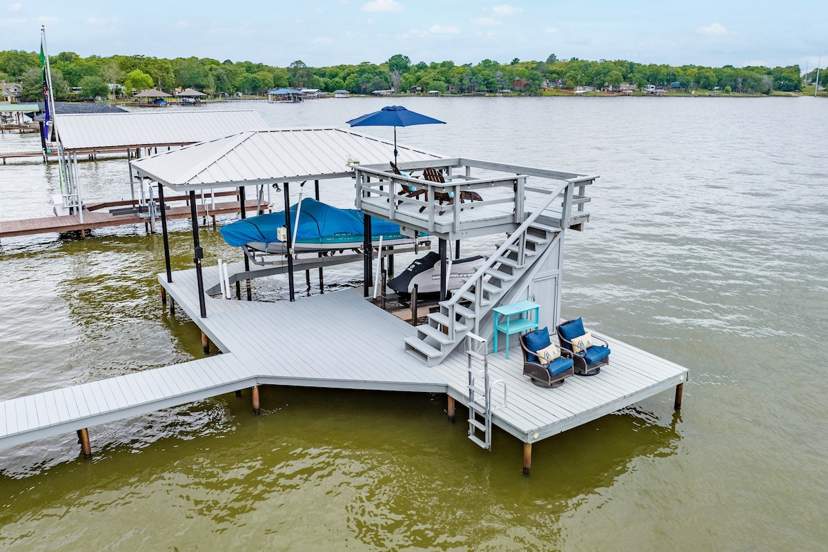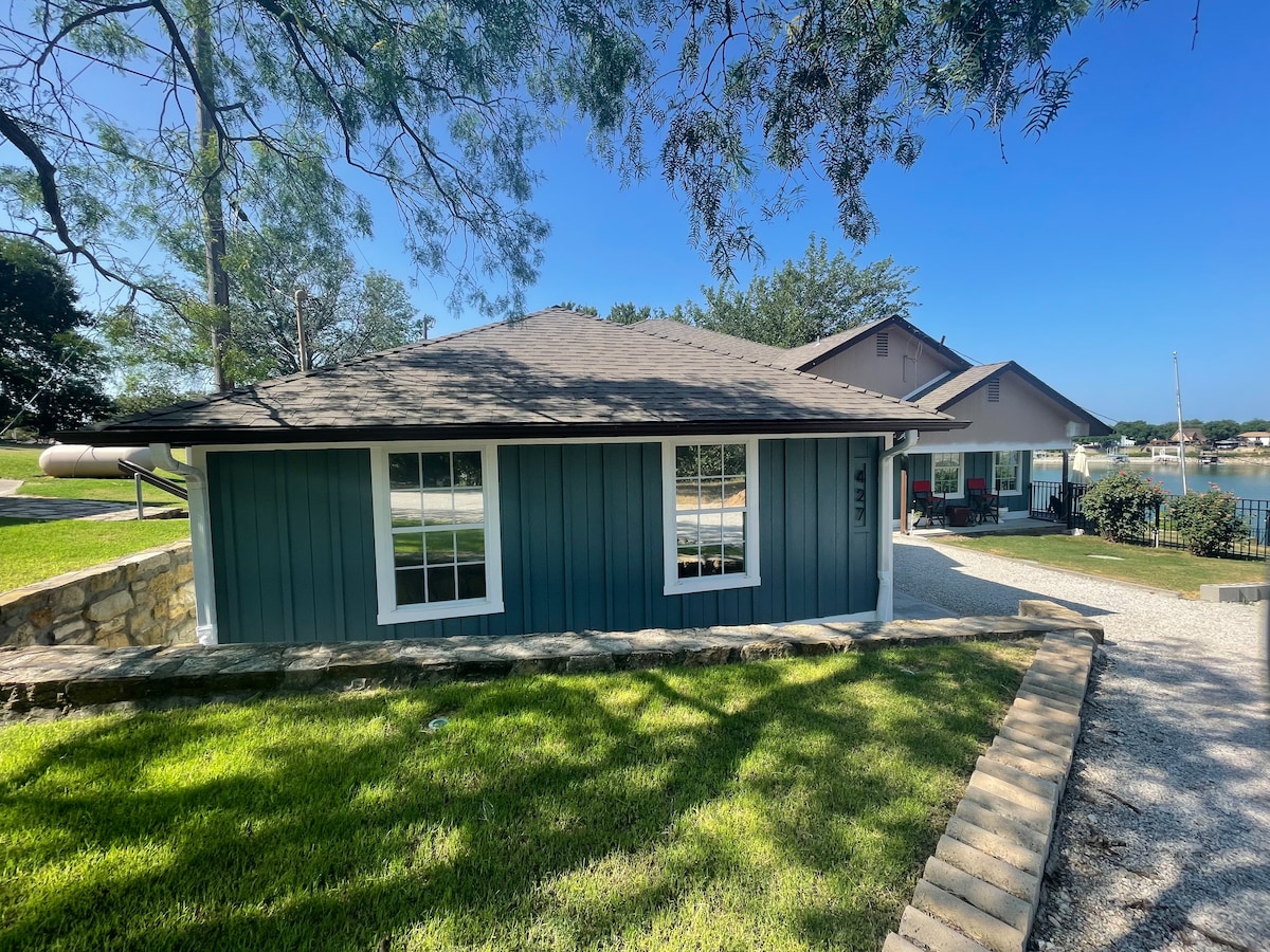 Lake Granbury waterfront! You'll love your stay at Holiday House, a unique and beautifully designed home. It's a lakeside dream including a dock, covered patios, and outdoor dining area. You'll enjoy your morning coffee, or a glass of wine while watching the sun set over the lake. The fully stocked kitchen makes preparing meals a breeze. Just a quick 6 mile drive to Granbury's Historic Square where you'll find live music, boutiques, & great dining. This is the one you've been looking for!