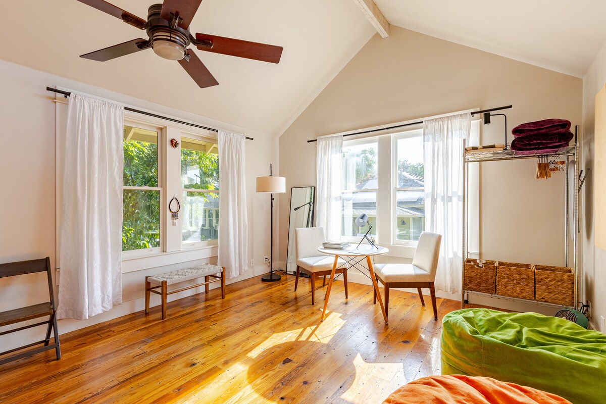 Bright and spacious loft in the Fairmount National Historic District. Within short walking distance of the eclectic Magnolia Ave. restaurants, coffee shops, and nightlife. A short drive or bike ride to the TCU campus, museum district and downtown. Comfy queen-size bed, full bath, high-speed fiber optic internet, beautiful sky lights, plenty of privacy. Backyard shared with host who's happy to offer tips on all things Fort Worth! The loft is located in the quiet center of the neighborhood.