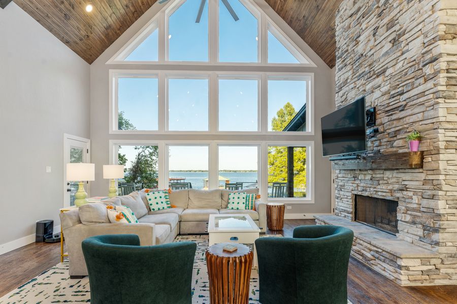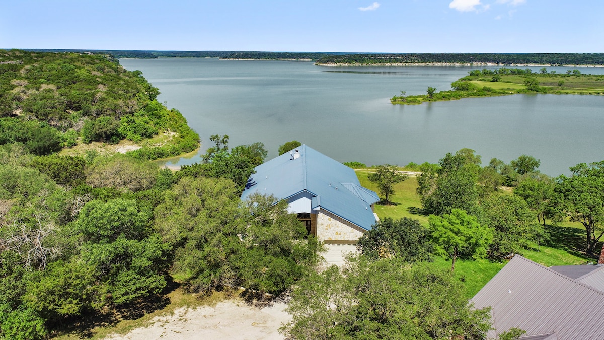 Come enjoy stunning views! This private home sits on almost an acre of waterfront property and includes a private dock, pool, hot tub, and outdoor kitchen. Inside, enjoy relaxation at its finest including game room, entertainment room with seating for 20+. Smart TV's in every living area and bedroom. All this within 3 miles of the famous Granbury Square. Also have adjoining tiny home available to rent and add 4 additional guests https://www.airbnb.com/l/rD4kTJAO