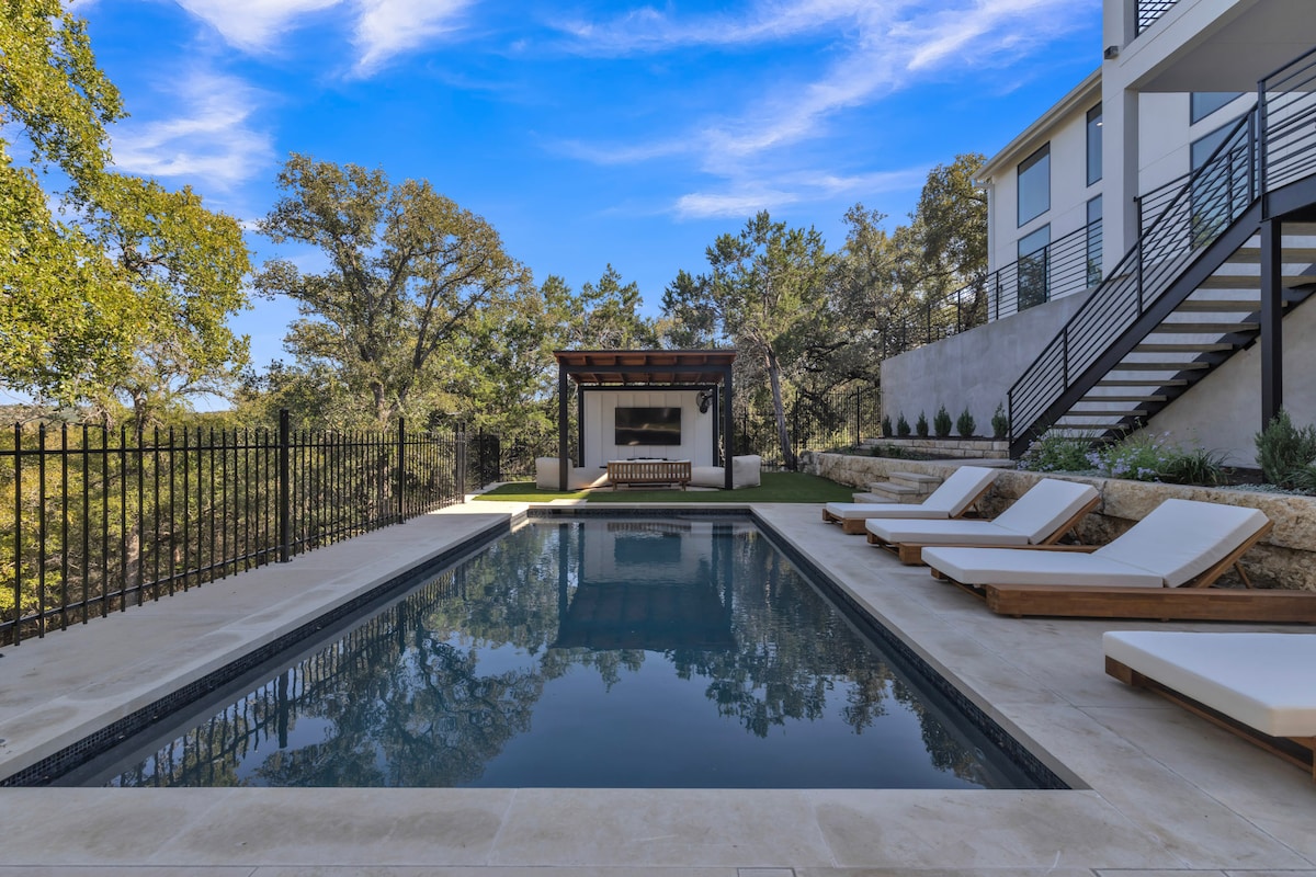 现代奥布雷德克萨斯农舍,带泳池和加热水疗