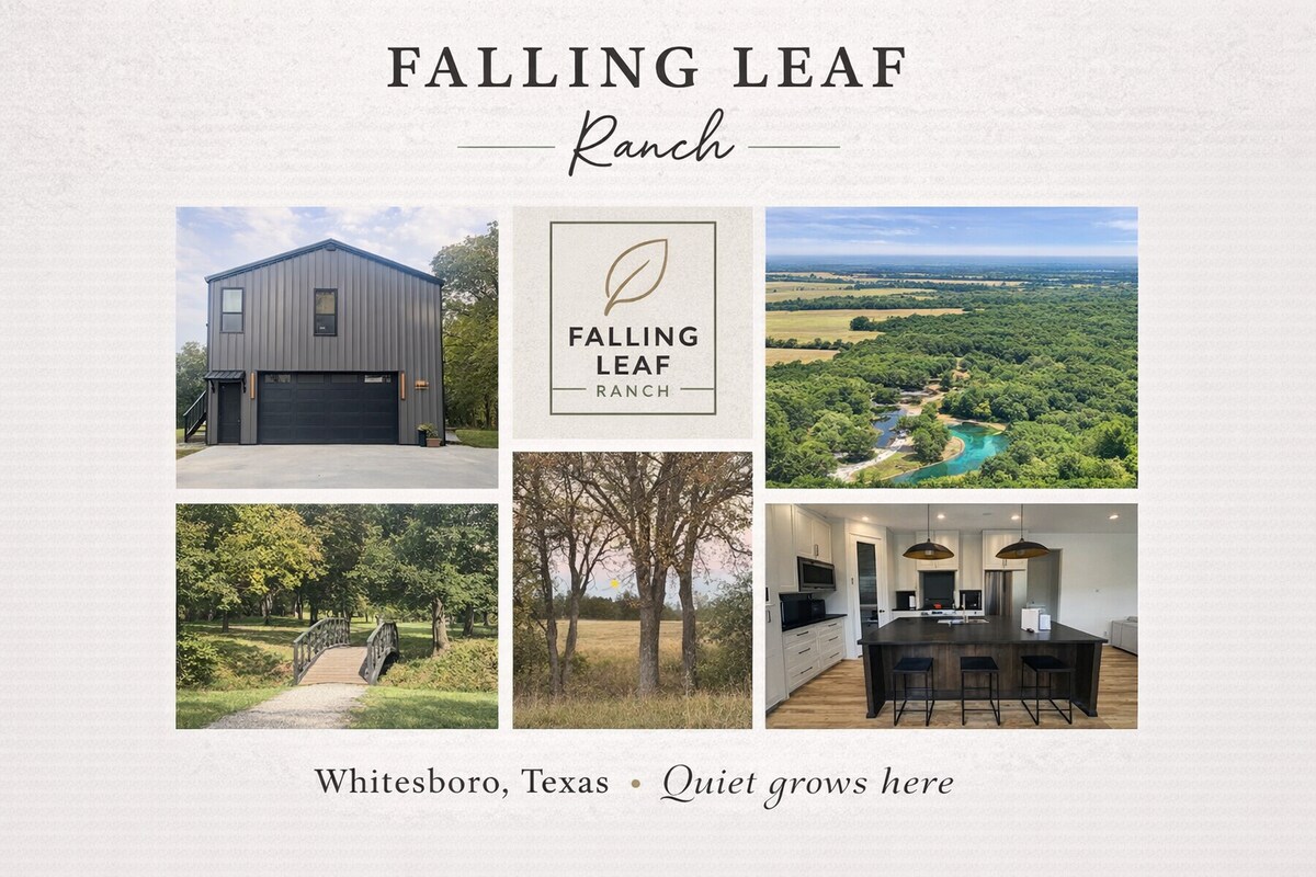 Unplug, unwind, and enjoy nature at this charming 2-bedroom barndo tucked away on 21 acres in Whitesboro, TX. With a full kitchen, spacious living room, private cozy fire pit, and scenic surroundings—including oak trees, a pond, trails, horse boarding & bridges—this retreat is perfect for couples, families, or friends looking to relax and recharge. Whether you're looking for a weekend getaway, a creative retreat, or just a quiet place to relax, "Falling Leaf Ranch" has everything you need.