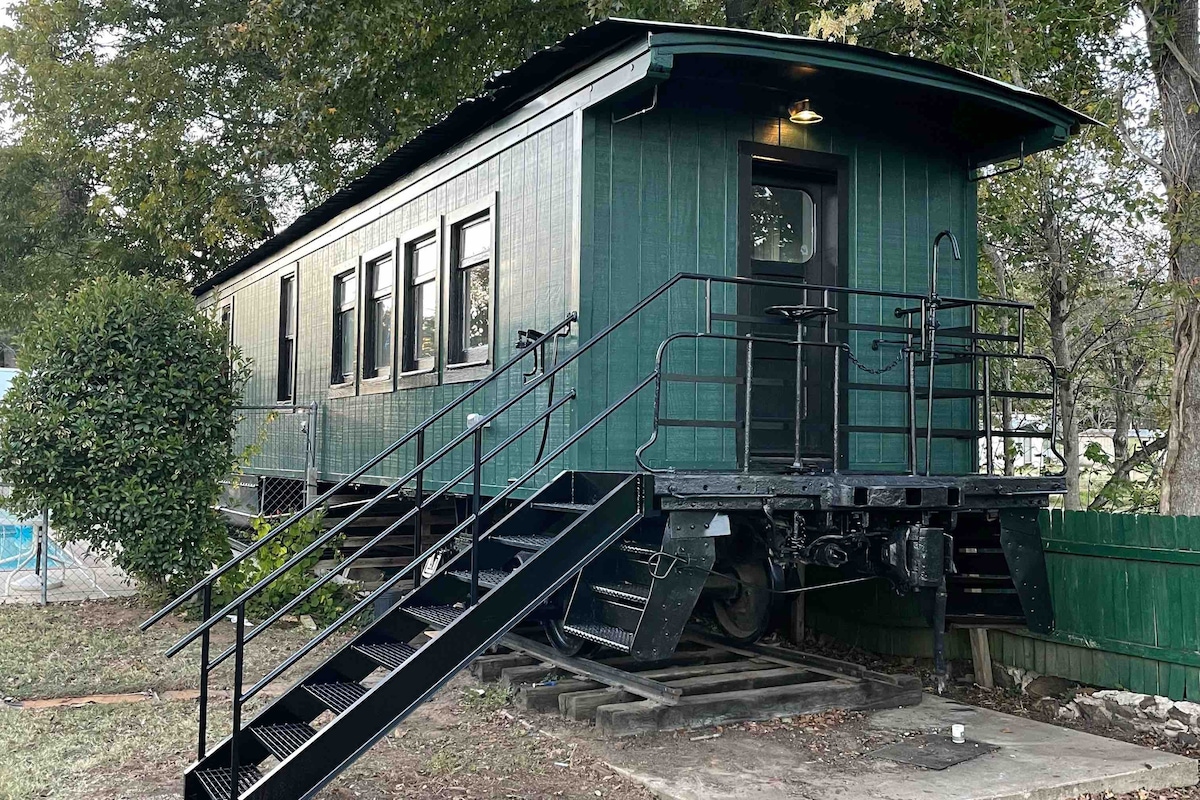 Hang On ! All Aboard!! You'll love this unique and romantic escape as you travel instantly back to the Art Deco Era in these beautifully restored train cars. The “Dining” car is 80 feet in length and will host the living room, dining area, kitchen, and a very unique work space that will send you dreaming of a different time. The “Caboose” will be the exquisite Master Suite area with beautiful linens and a sitting area. The “Depot” is an unbelievable 250 sq ft bathroom that will blow you away.