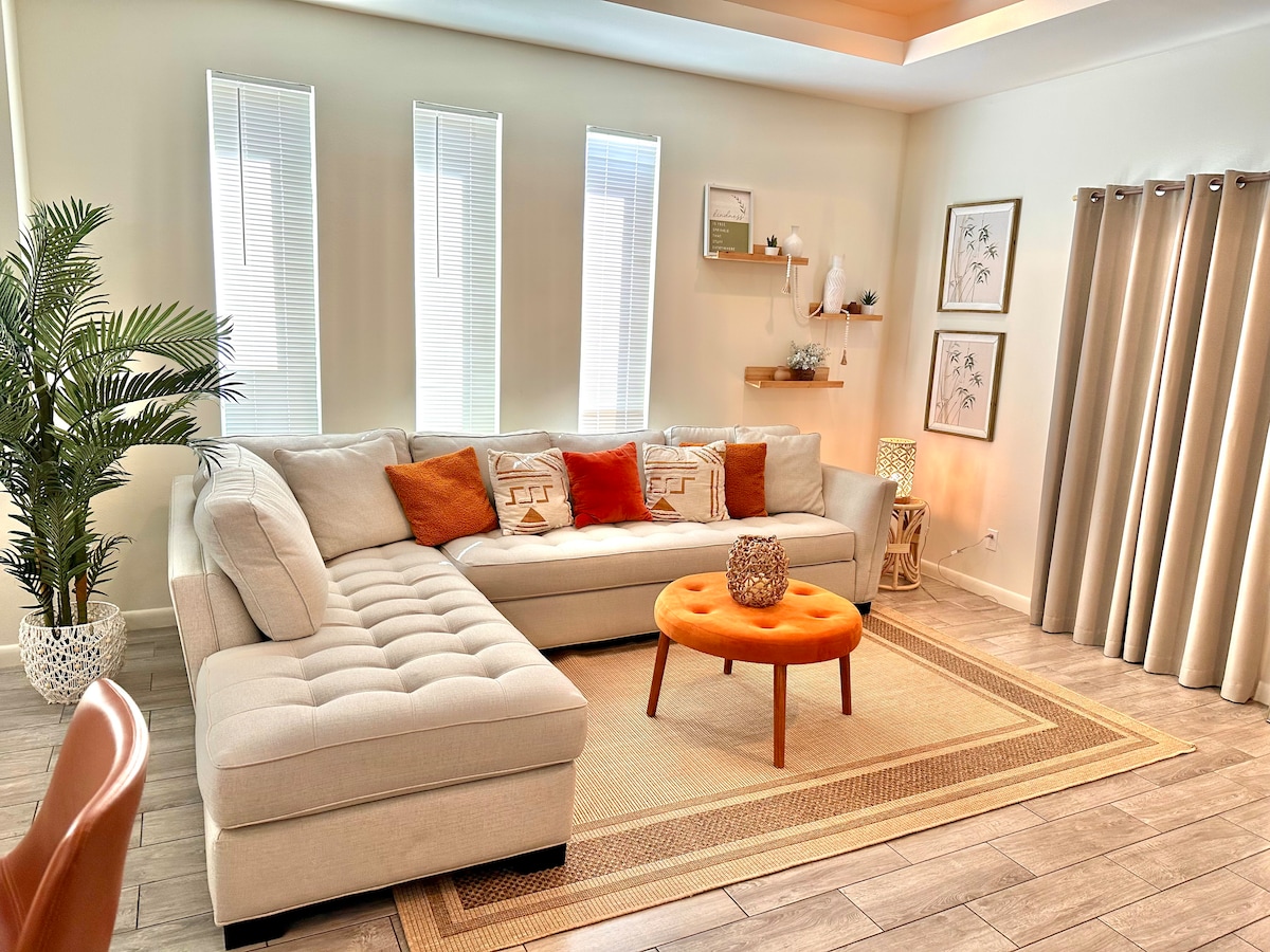 Rustic Highland is a 740 sqft tiny luxury cabin full of warmth and charm, featuring stained cabinetry and boho-inspired accents. The bright living area flows into a fully equipped kitchen, and the spa-like bathroom adds a touch of luxury. The main bedroom has a queen-size bed with ample storage, while the loft offers another queen bed and stunning canyon views. Outside, enjoy the private patio with a bistro table and grill, all set on the edge of Palo Duro Canyon for an unforgettable experience.