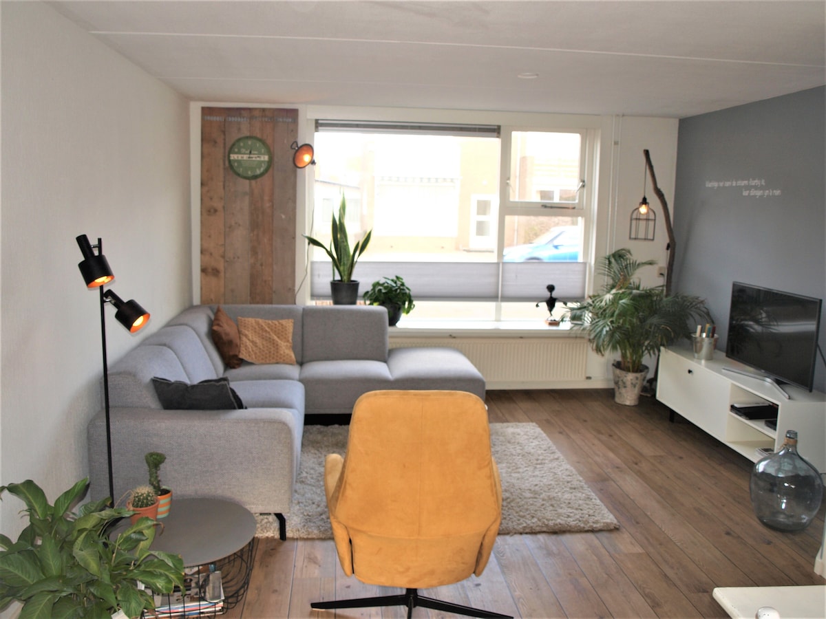 The completely furnished apartment from Enjoy Texel is within walking distance of the beach, restaurants, shops, dunes, bicycle and hiking trails. It's located in a quiet residential area. Easy accessible by car and public transport. A parking space is available on the driveway. Attention the apartment is situated on the second floor and had sloping walls. You can see them on the pictures. In the apartment ar no childern aloud.