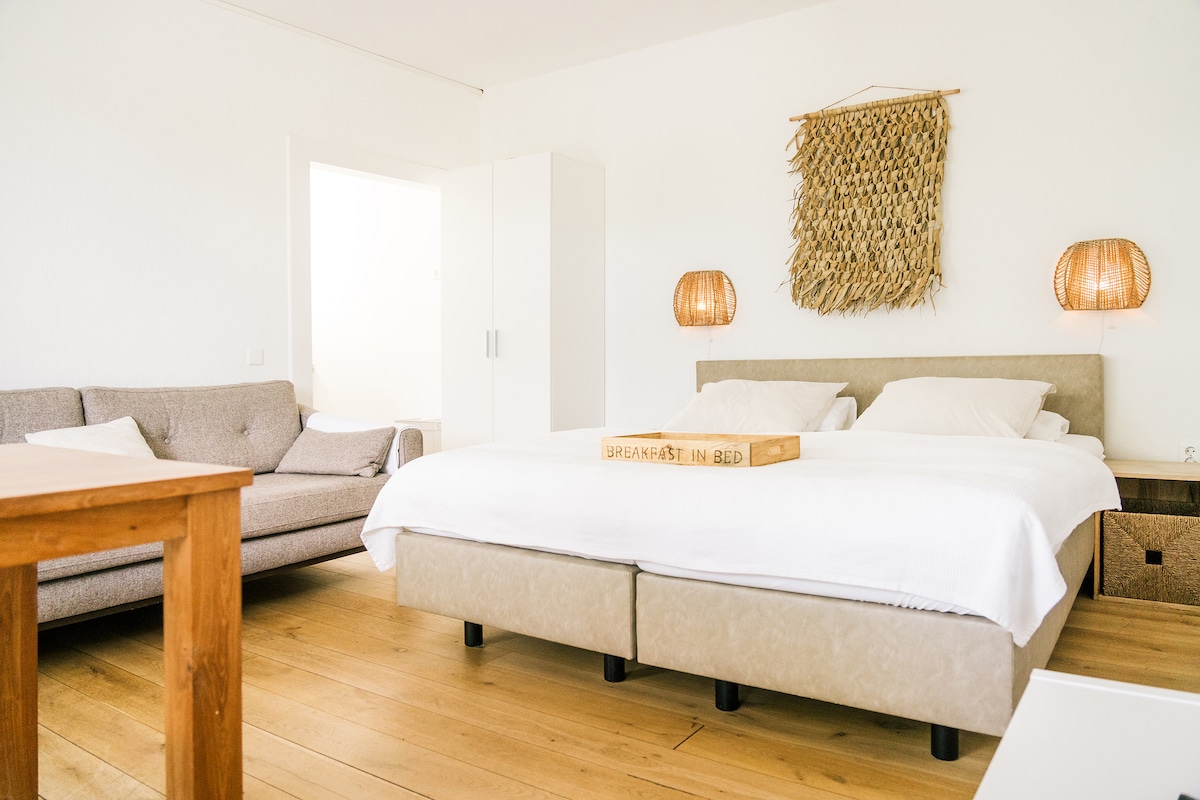 Knus, compleet, schoon, stijlvol, dat is wat onze gasten vaak schrijven. De B&B is geschikt voor 2-3 personen. Ruime woonkamer met eigen douche en toilet en eigen ingang. Prachtige bovenverdieping met een heerlijke boxspring. In de woonkamer een fijne slaapbank. Goede WiFi, smart-tv, nespresso-apparaat, koffiezetapparaat, melkopschuimer, waterkoker, koelkast, combimagnetron en keukentje (geen kookgelegenheid). Gourmetten, wokken e.d. zijn niet toegestaan. Ontbijt is niet bij de prijs inbegrepen.