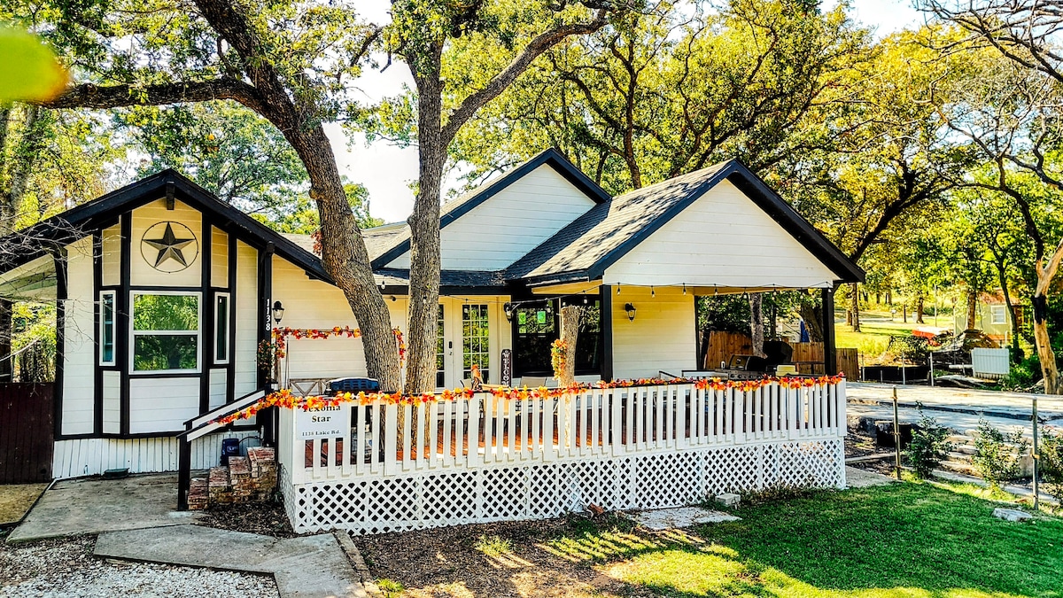 Top 5-rated home on Lake Lewisville! This 3BR/2BA modern farmhouse offers stunning lake views, two porches, completely remodeled, spa-like bathrooms—refinished hardwoods, a gourmet kitchen, stainless appliances, cozy furnishings, and dreamy beds. Set on over 1 gated acre, enjoy a private security gate, 5 STAR shared amenities: fishing, 8 person HOT TUB, kayaks, paddleboards, lake toys and BBQ Grill Stocked like a hotel but feels like home—perfect for relaxing or playing on the lake all day.