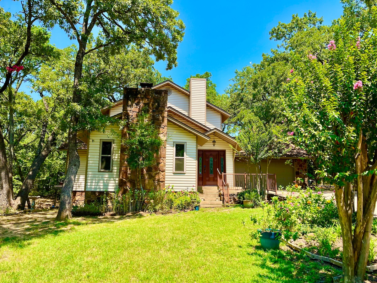Unplug & Recharge at this hidden gem nestled in the woods of Wise county Texas! This beautiful 5 acre property is a great place for getaways for large or small groups. We have 2 AIR BNB rentals on site with 24 hr access to the swimming pool, hot tub, outdoor kitchen & fire pit which are all centrally located in the middle of the property. If you are looking for additional space for your group please see our second listing "The Guesthouse at Woodland Escape." Inquire about private party packages.