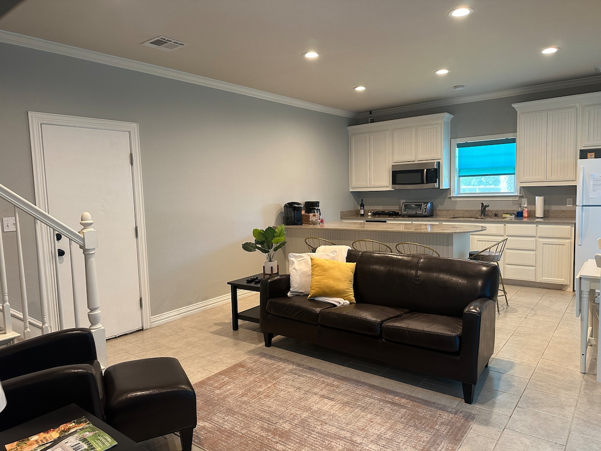 Kick back and relax in this brand new calm, stylish studio. Located off of Interstate 35, this is a prime location for taking a quick trip down to Dallas or to the UNT college campus. Our guests will enjoy a private unit with a walk in shower, full size appliances, in-unit washer and dryer, and complete blackout shades for those that work nights or like to sleep during the day. This space would be ideal for parents visiting their children at UNT or traveling healthcare professionals.