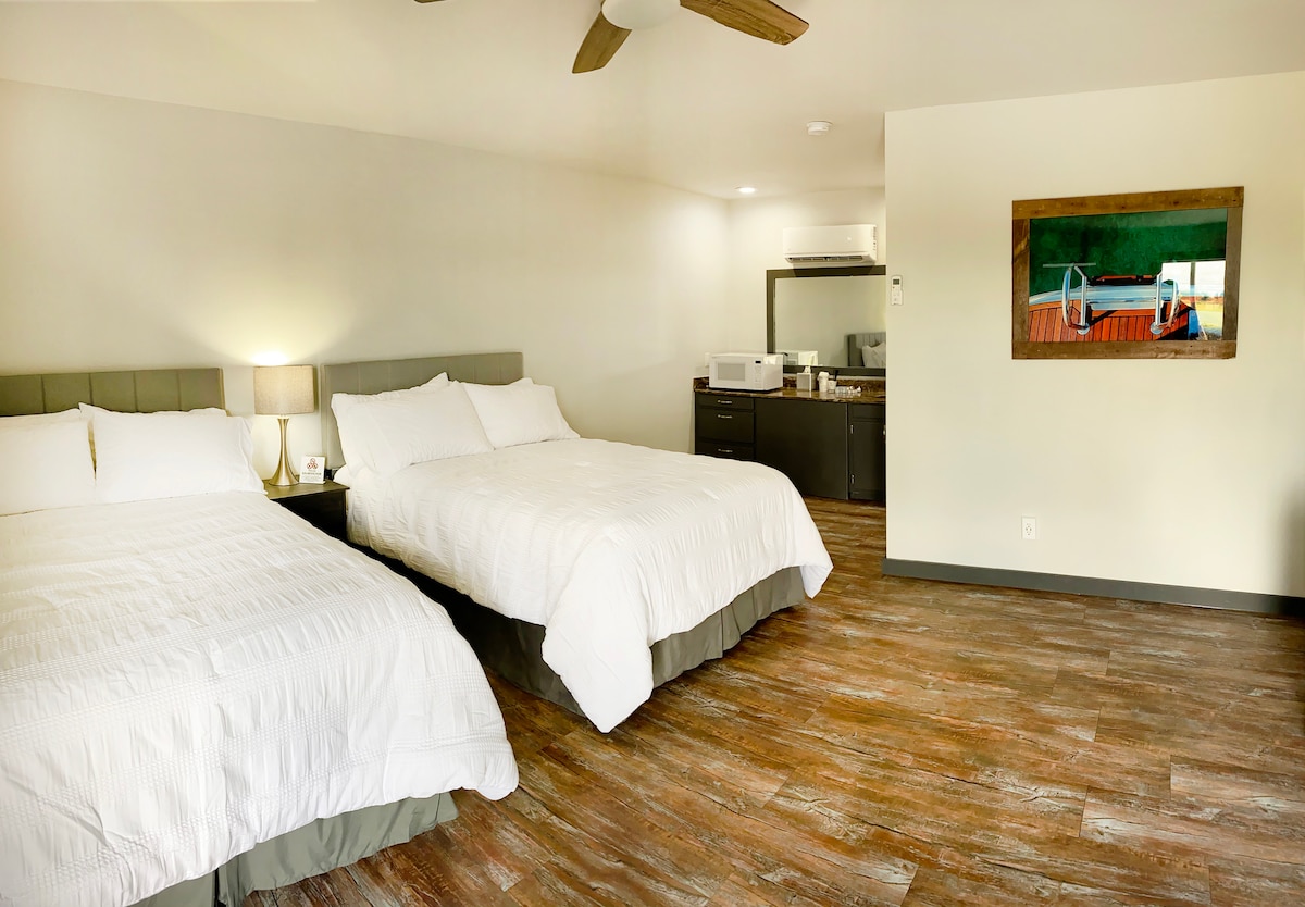 Weekend or weekday rentals near Lake Texoma. The Fink Motel is located in Pottsboro, TX. near a community just off Farm Road 289 next to Fink Liquor, twelve miles north of Sherman in north central area near Lake Texoma. This room has 2 queen size beds; Every room with the motel will have a smart TV, coffee maker, minifridge, WiFi and a microwave. The motel consists of 12 rooms and is located next to Harbor Ship’s Store. Free parking on premises. Great location!