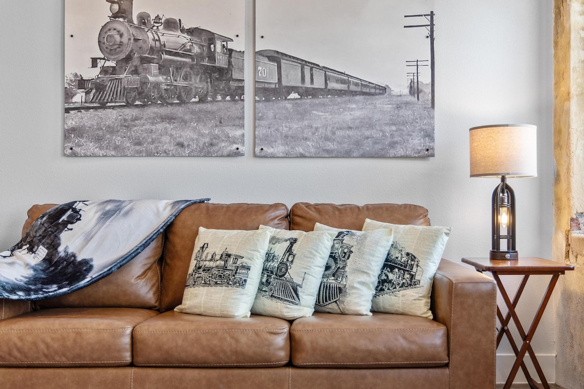 Immerse yourself in the timeless charm of Katy Depot lofts, nestled at the end of Main Street in vibrant Downtown Denison. Be welcomed by the exquisite chandeliers and iconic fixtures that define the Depot's elegance. Within the loft, enjoy views of historic train station tracks and the vintage MKT train. Discover conveniences like a coffee shop, winery, dining options, and boutique shopping, all onsite. Venture into Downtown Denison for more dining and activities, all within walking distance.