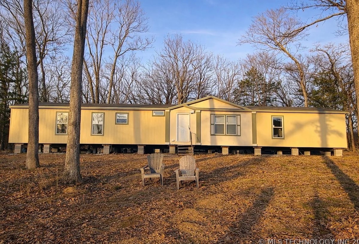 Enjoy the beautiful forest view from the large deck & tall living room windows. A gas grill, fire pit, dry sauna, Wi-Fi, and TV (including Netflix) are also available. The house borders the Chickasaw National Recreation Area (CNRA), which allows bow hunting (behind my house) & gun (1 mile north). Boat docks & swimming areas are nearby at Arbuckle Lake. You will be a short drive from local attractions:CNRA, Turner Falls, Arbuckle Wilderness, Chickasaw Cultural Center, and Artesian Casino, & Spa.