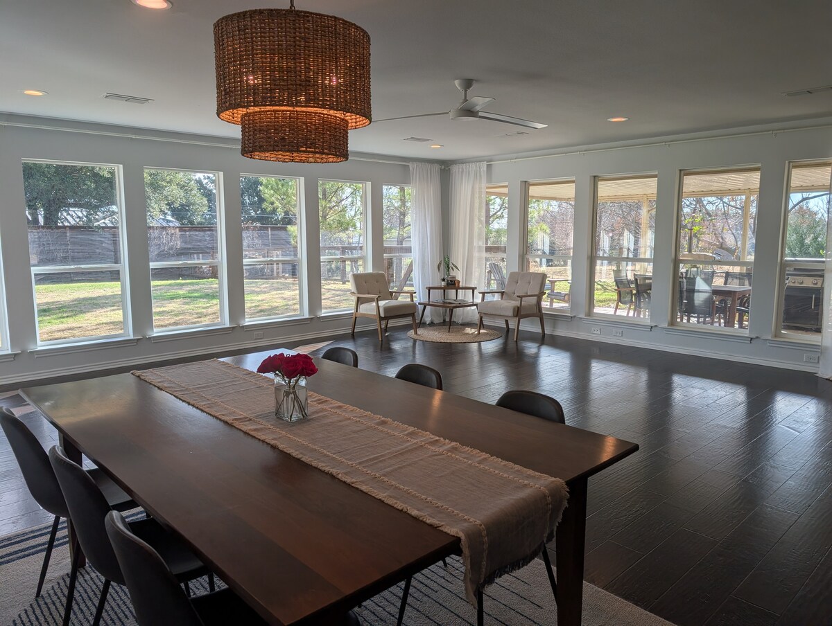 Unplug & Recharge at this hidden gem nestled in the woods of Wise county Texas! This beautiful 5 acre property is a great place for getaways for large or small groups. We have 2 AIR BNB rentals on site with 24 hr access to the swimming pool, hot tub, outdoor kitchen & fire pit which are all centrally located in the middle of the property. If you are looking for additional space for your group please see our second listing "The Guesthouse at Woodland Escape." Inquire about private party packages.