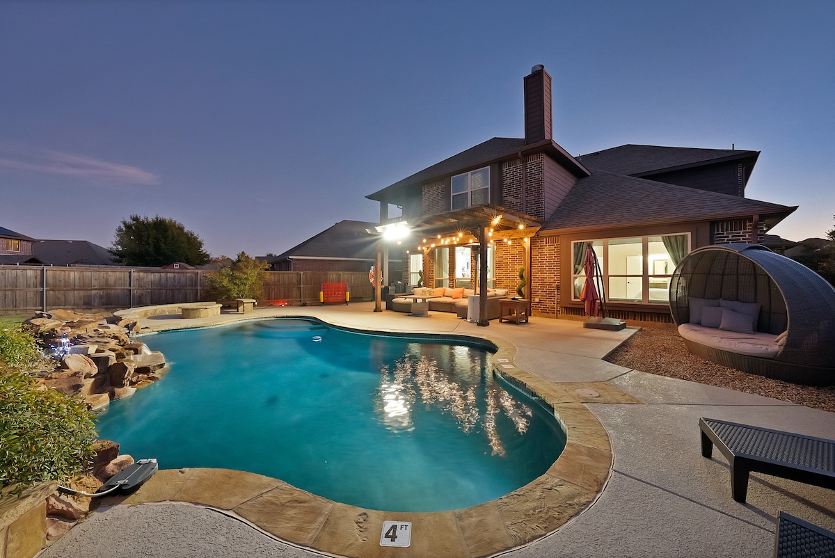 Relax in this resort-style Frisco retreat w/ a private pool, waterfall, firepit & game room—perfect for multi-gen families & groups visiting PGA events, Denton or Lake Lewisville. Spacious, spotless & fully stocked, it’s an easy home base for weddings, holidays & cozy nights in. ⭐ “Best house we’ve ever stayed in…so many options for all ages!” – Cathy 🌄 HIGHLIGHTS ✓ Private pool, waterfall & firepit ✓ Game room + family-friendly setup ✓ Mins to PGA Frisco, Denton & lake access
