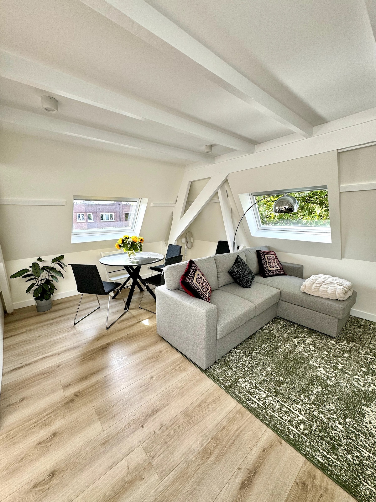 Newly renovated apartment on the top floor of a historical town house in the old city center of Haarlem, only 3 minutes walking distance from the train station and the city center. The beach of Zandvoort (9 minutes by train) and Amsterdam (18 minutes by train) are also very close, which makes this apartment the perfect place for your city-trip to Haarlem, Amsterdam of the beach.