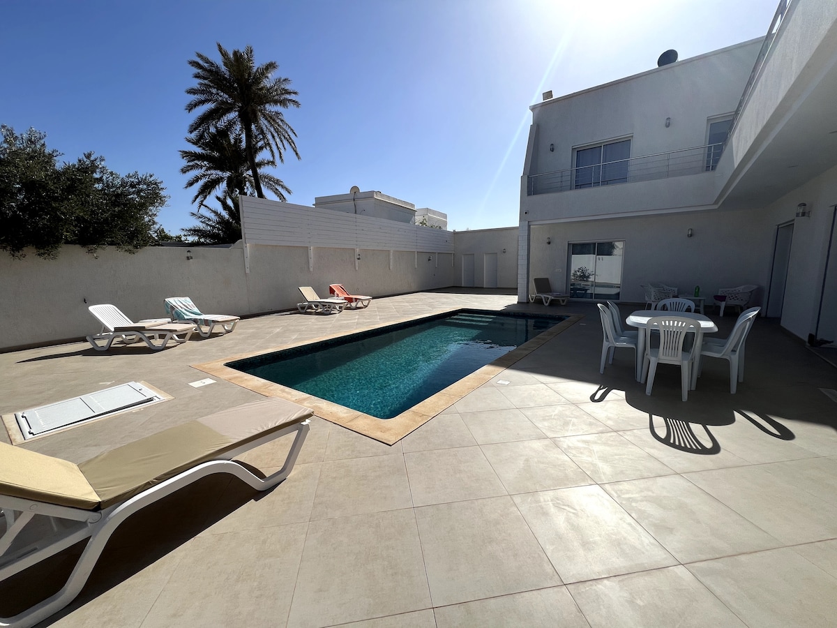 ⛱️. Découvrez le luxe absolu à Djerba en séjournant dans notre villa prestigieuse, idéalement située à quelques pas de la plage Idéale pour des vacances en famille ou entre amis, la villa dispose de 3 suites spacieuses, d’un salon confortable, d’une cuisine équipée avec vue sur une piscine privée sans vis-à-vis et très sécurisée, ainsi qu’une terrasse avec vue sur mer. Nous pouvons organiser la livraison de repas, petits déjeuners Jacuzzi chauffé moyennant un supplément