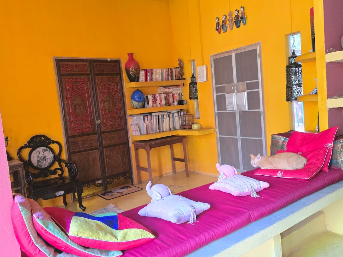 Relax at our peaceful 3-bed farm home just 1.5 hrs from Bangkok. Surrounded by forest, birdsong, and friendly animals, it’s the perfect escape for couples, families, or friends. Simple, cozy, and full of charm—this isn’t a polished resort, but a warm, rustic getaway. Includes private bathroom, AC, living room, shared outdoor showers, BBQ area, and lounging spots. Breakfast with coffee, Thai or Indian dishes available daily. Come slow down and enjoy the quiet countryside.