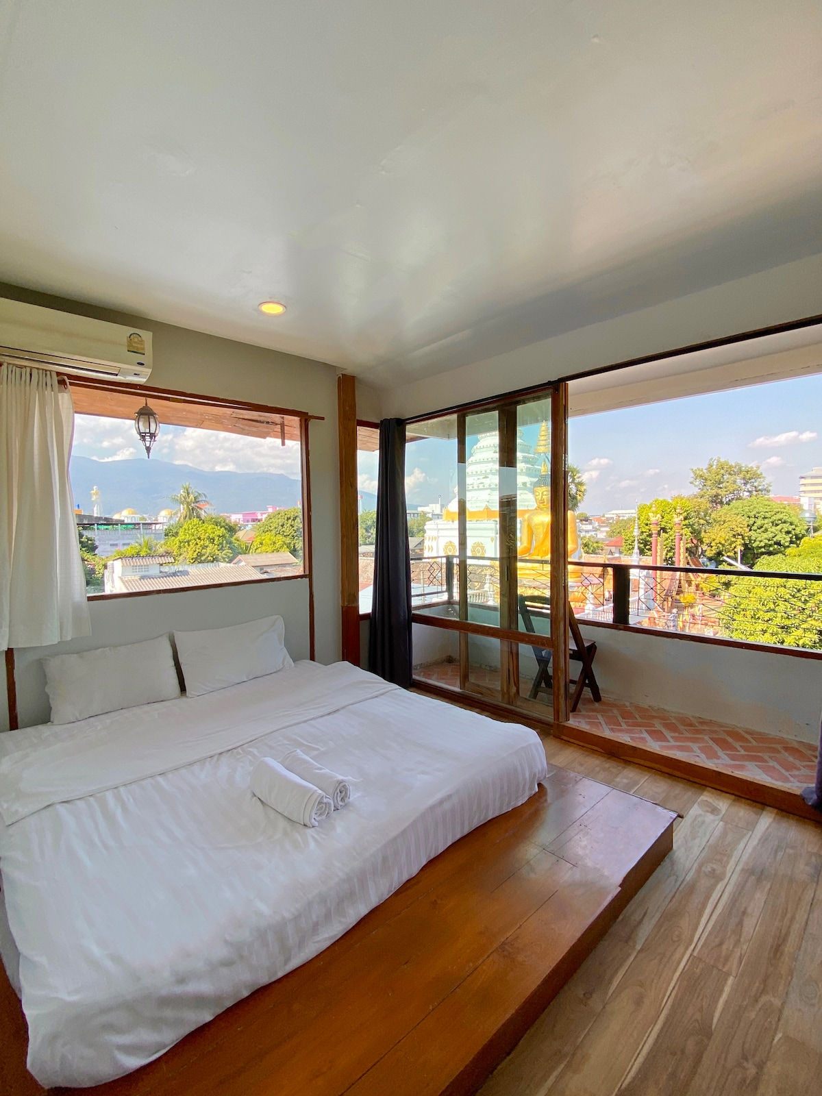 Muan Hotel next to Thapae gate (less than a min walk) Our new (2023) stylish room with bathtub a stunning mountain view along with old city river moat in Chiang Mai. With new social living room, kitchen, movie, and game room. We are in super ideal location. The famous Sunday walking street & Thapae Gate located only 10 steps from the hotel, you'll find there famous temples, cafes, markets and bars next door destinations.