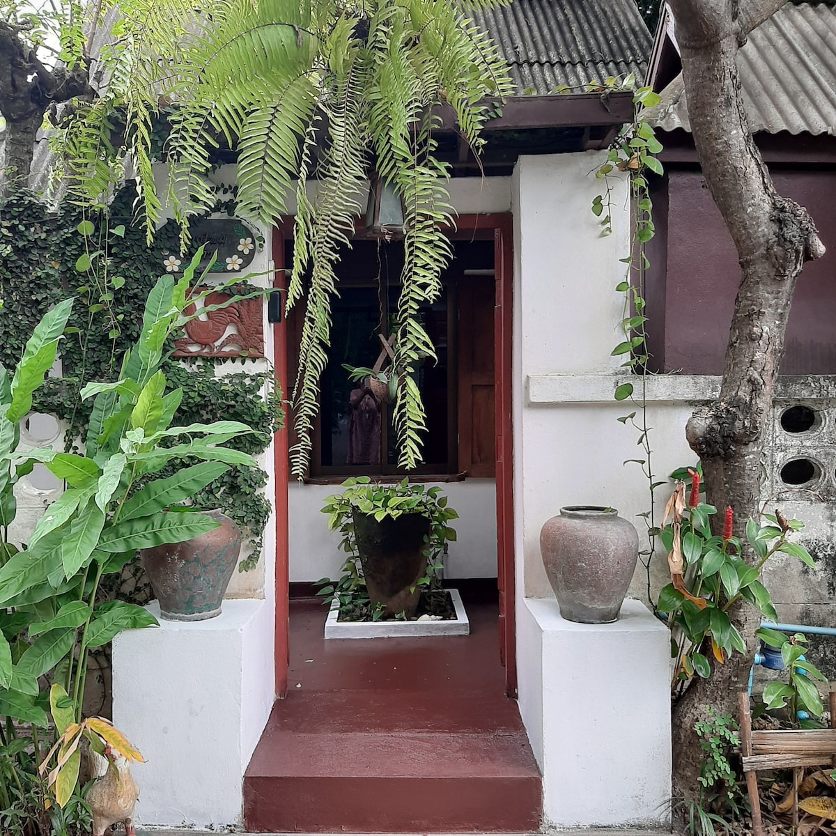 嗨!欢迎您来我家做客。我们很幸运地在市中心附近有一个大院子。这个木屋特别适合都市人来做短暂休息和放松,这里有非常适合放空的大花园和13米长的泳池。房子设计理念来自传统泰北农村的兰纳谷仓(二楼卧室、一楼存放生产资料、厨房及休息空间),我们在此基础把传统的房子改成更高空间、拥有更多采光,也在楼上楼下都配有洗漱卫生间。同时我们非常喜欢日式房屋内装的简约,所以做了融合。此外,房子里的古董家具和摆设都是我们过去几年在清迈所淘来,有些刚好和房子非常搭配,就随心地布置了。房子里的艺术画作均来自我孩子的父亲,他是本地艺术家。 如果您预定,将会使用整栋房子及花园和游泳池,房客会有独立的入口,另一侧是房东居住,因花园足够大,两个房子之间有20-30米距离,彼此都有足够的私密性。 抱歉,我们暂时不分开预定房间。 厨房提供全面的烹饪工具和厨餐具,还有洗衣机和烘干机。我们平时生活状态比较灵活休闲,周末可以带房客练瑜伽、徒步爬山、一起逛菜市场做泰餐、或一起玩水彩画画,如有兴趣,请主动给信号哦!