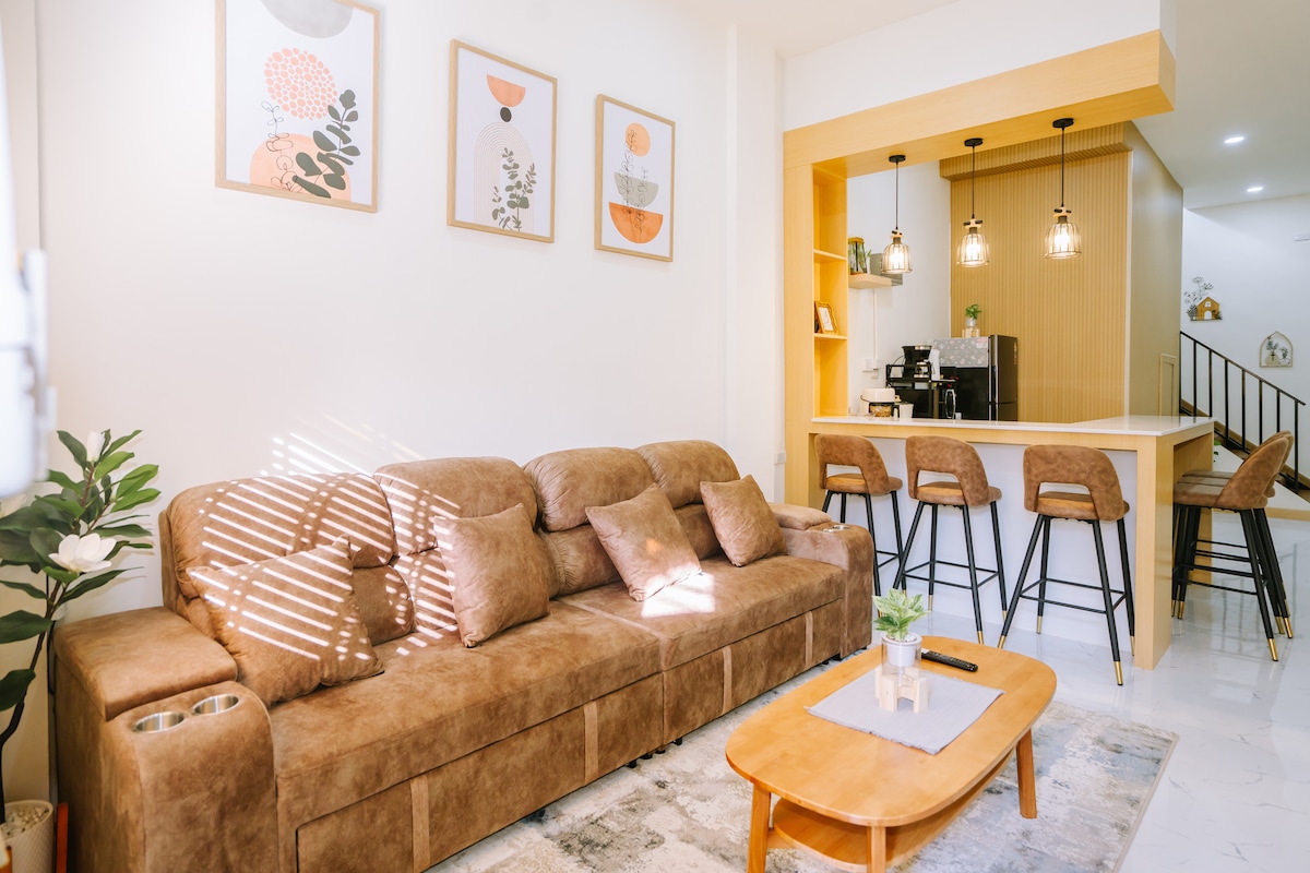 You will feel at home ! 🏆9 yrs—Superhost 🏆Guest favorite 🏆No airplane noise 🏆Well–designed and spacious Spacious entire home in Nimman trendy area, Great for a group of friends or family. Best fit for 3-7 people that each member can enjoy plenty of space and have enough privacy. The house is decorated in warm-minimalism style by myself. There are some of my photographs I took, my handmade art pieces, and Chiang Mai’s handicraft. You're just a few steps away from cafés and coffee shops.