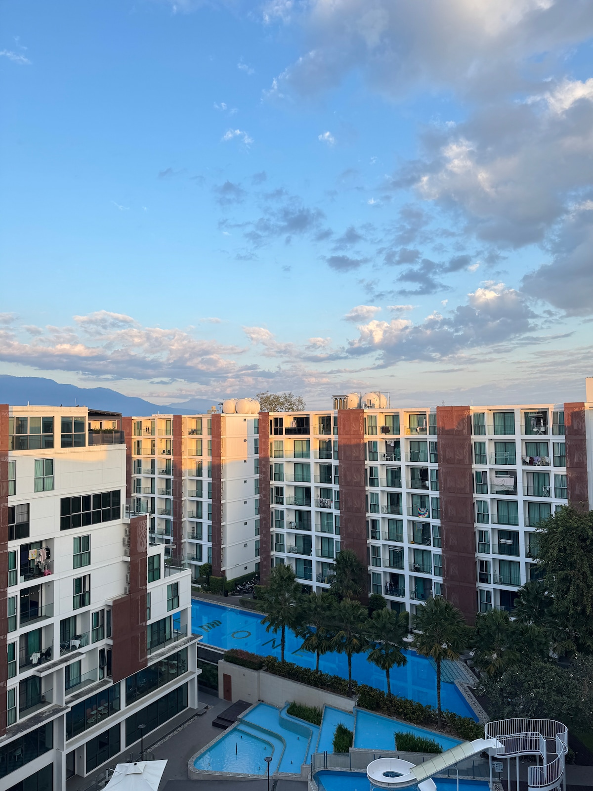 该房源位于清迈繁华的黄金商业地段长康路,是清迈唯一附带空中庭院的公寓,顶楼拥有超长150米山景无边泳池,可以欣赏清迈的日出和日落风景。 Astra sky river located on Changklan Road, which is the golden commercial area in Chiang Mai. The top floor has a super long 150 meter mountain view infinity pool, where you can enjoy the sunrise and sunset of Chiang Mai.