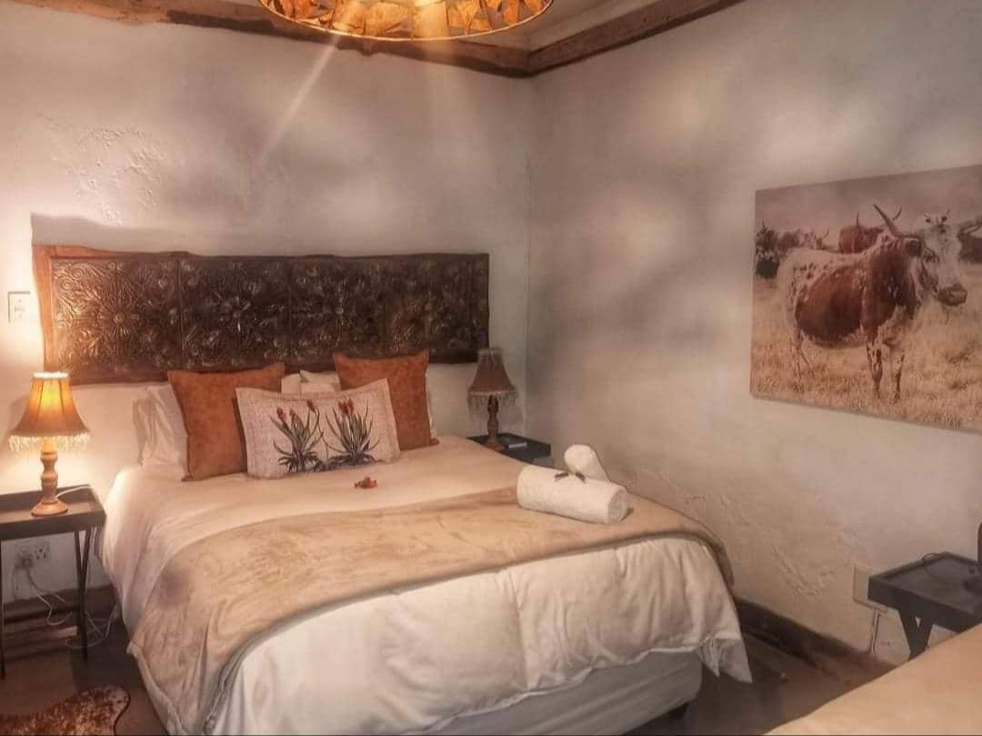 This charming farm stay cottage offers a relaxed country escape, comfortably sleeping up to four guests with one queen bed and two single beds. Ideal for self-catering, it features a fully equipped kitchen, satellite TV, and Wi-Fi for your convenience. Each room has its own ensuite bathroom. Outside, guests can unwind and enjoy the peaceful farm atmosphere at their private braai area- the perfect spot to take in the views and soak up the tranquil surroundings.
