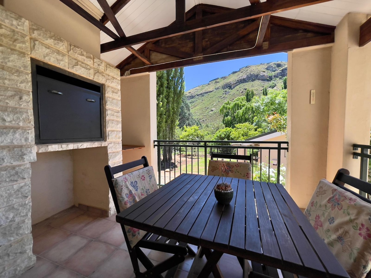 LemonThyme is a charming, compact unit ideal for small families. It offers two bedrooms (queen and twin beds) sharing a full bathroom. The open-plan kitchen and lounge feature a fireplace, opening onto a covered verandah with braai facilities and lovely mountain views—perfect for relaxed family time. Sleeps 4 (no children under 12). Longer stays available at discounted rates.