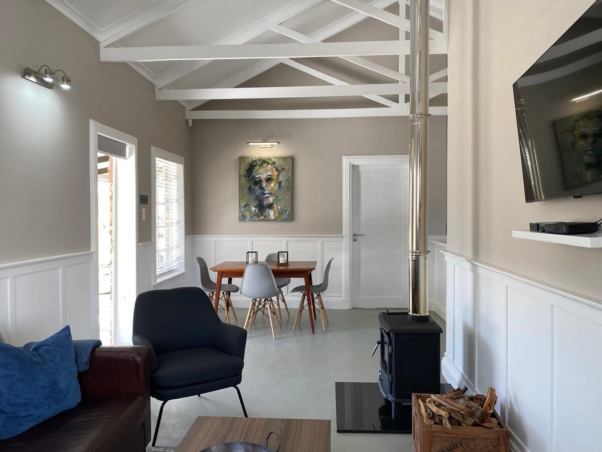 Perfect for a relaxing couple’s mountain getaway or work remotely. The garden boasts 200 year old trees and abundant bird life. Enjoy panoramic mountain views from the veranda. The cottage boasts an uber comfy king size bed, fluffy towels included. En-suite bathroom with walk-in shower. Well equipped kitchen with Nespresso machine. Fast WIFI. Netflix. Cozy fireplace for cold days. Fire pit. All self-catering. Explore nearby shops and restaurants or hike in the berg.