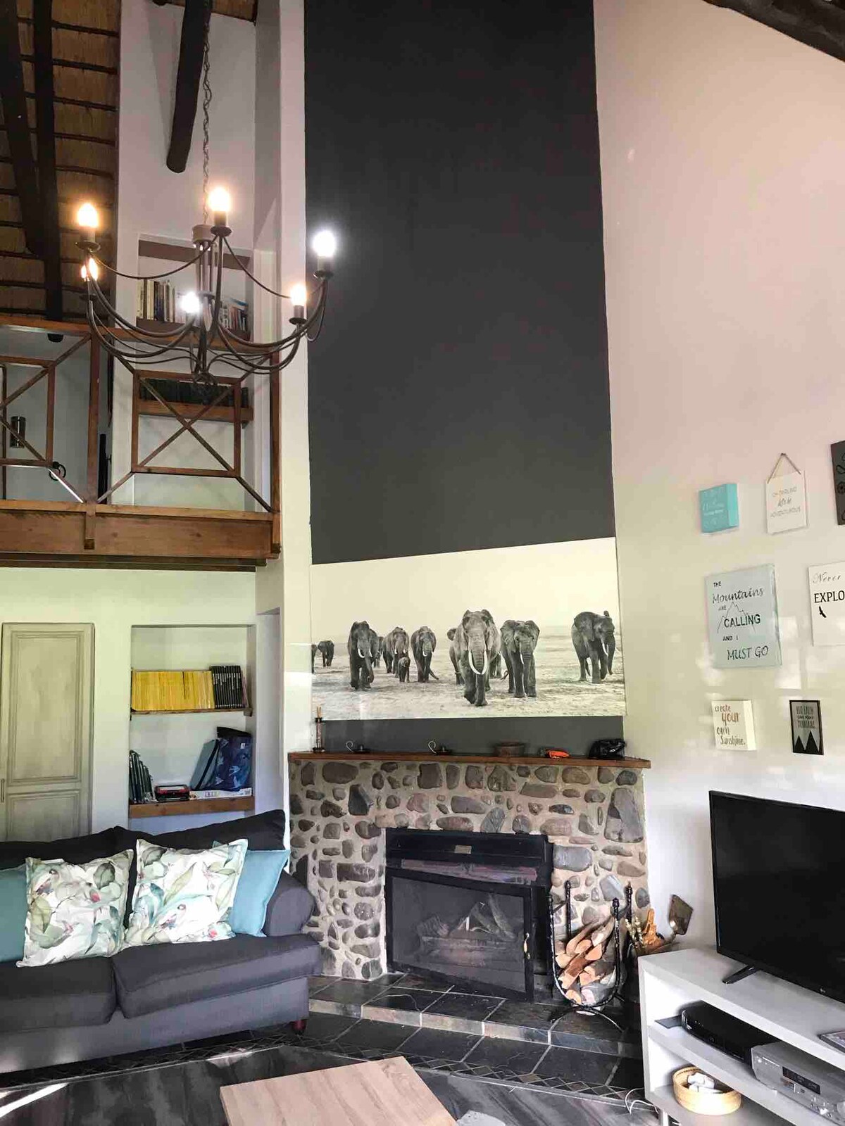 A stunning house filled with bright, natural light. River frontage and valley and mountain views. Two sitting rooms, both with DSTV so you can have sport and cooking on at the same time! Only 6 minutes drive from The Clarens Square and 26 restaurants, yet you can unwind completely in the peacefulness of the wind and sunshine. Lovely walks. Electric blankets and wood burning fires , fully equipped kitchen, 4.5 bathrooms for 6 bedrooms including one with 4 bunk beds. It's huge but homely.