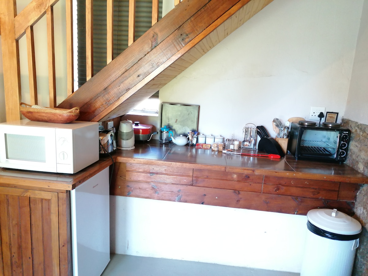 The Loft Room@Craigrossie is a self-catering space for two on Craigrossie Game Farm, 8 km (3kms on good gravel road) outside of Clarens towards Golden Gate. The self-contained space has a loft room with views over the dams & mountains, a queen bed with 100% cotton bedding, bathroom and a kitchenette downstairs. A borehole supplies water. DSTV, WiFi, tea, coffee & kitchen essentials (spices & olive oil) are provided. Bring your own rod for catch & release trout fishing (daily rod fees apply).