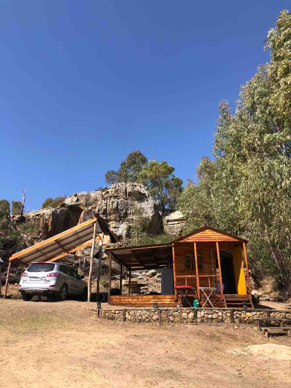 Experience the outdoors without the hassle of setting up a tent. Our cabin is 100% off the grid running off solar for power and borehole water. Enjoy walking and cycling trails, fishing on the dam or taking your off rd motor bike for an adventure. Horse riding is available on the farm next door.
