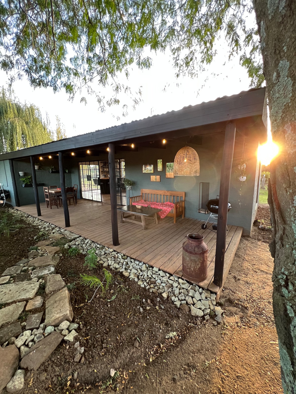 TRANQUIL SELF CATERING PET FRIENDLY COTTAGE - 20mins to CLARENS. Gravel Rd Access (1km). The most divine charming little Thatch roof cottage. Open plan studio style cottage featuring an equipped kitchen, dining area, lounge area, double bed, all of which seamlessly spill via double doors onto a lush garden with lovely pool. Braai provided. Bathroom with shower. Wifi. Surrounded by enchanting CLARENS, GoldenGate, Fouriesburg, Ficksburg & Rosendal. Mattress&Bedding for a 3rd person upon request