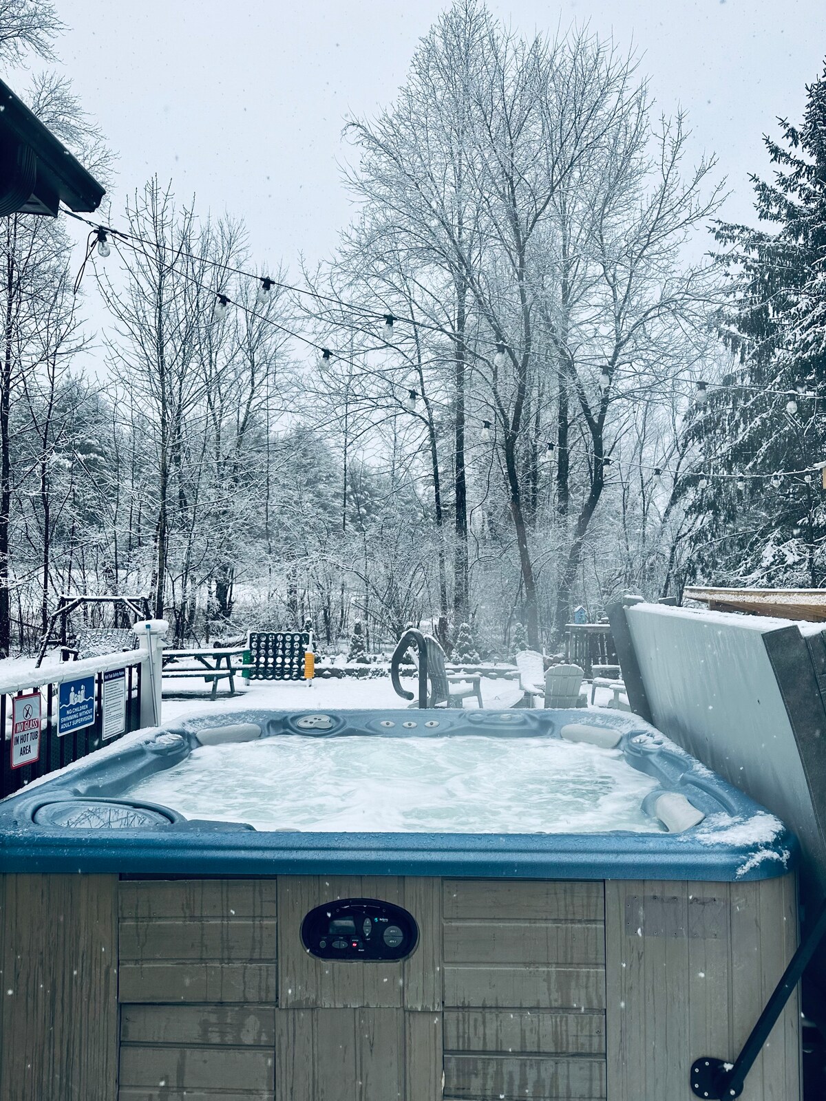 Just a little over 2 hours from NYC, the Cozy A-Frame is a 400 sq foot, eco-friendly, creekside cabin set in the Northern Catskills of New York. Our brand new home has been thoughtfully designed to include many indulging comforts while secluded in nature. Take in the calm of the woods from the hot tub or while roasting s'mores at the fire pit. Or turn up the music on the vintage stereo and watch the snow fall. An ideal getaway for those seeking a romantic escape or a change of pace to WFH.